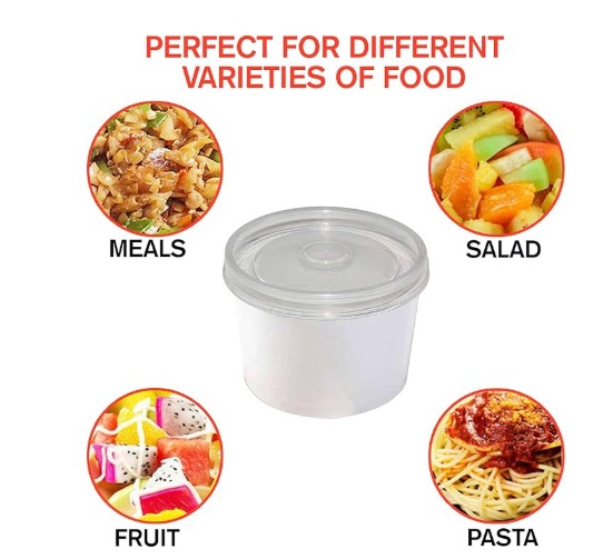 Paper bowls with lid, Great to put in some scrambled eggs, hot or cold cereal, Hot soup, farina, and even Fried potato cube’s